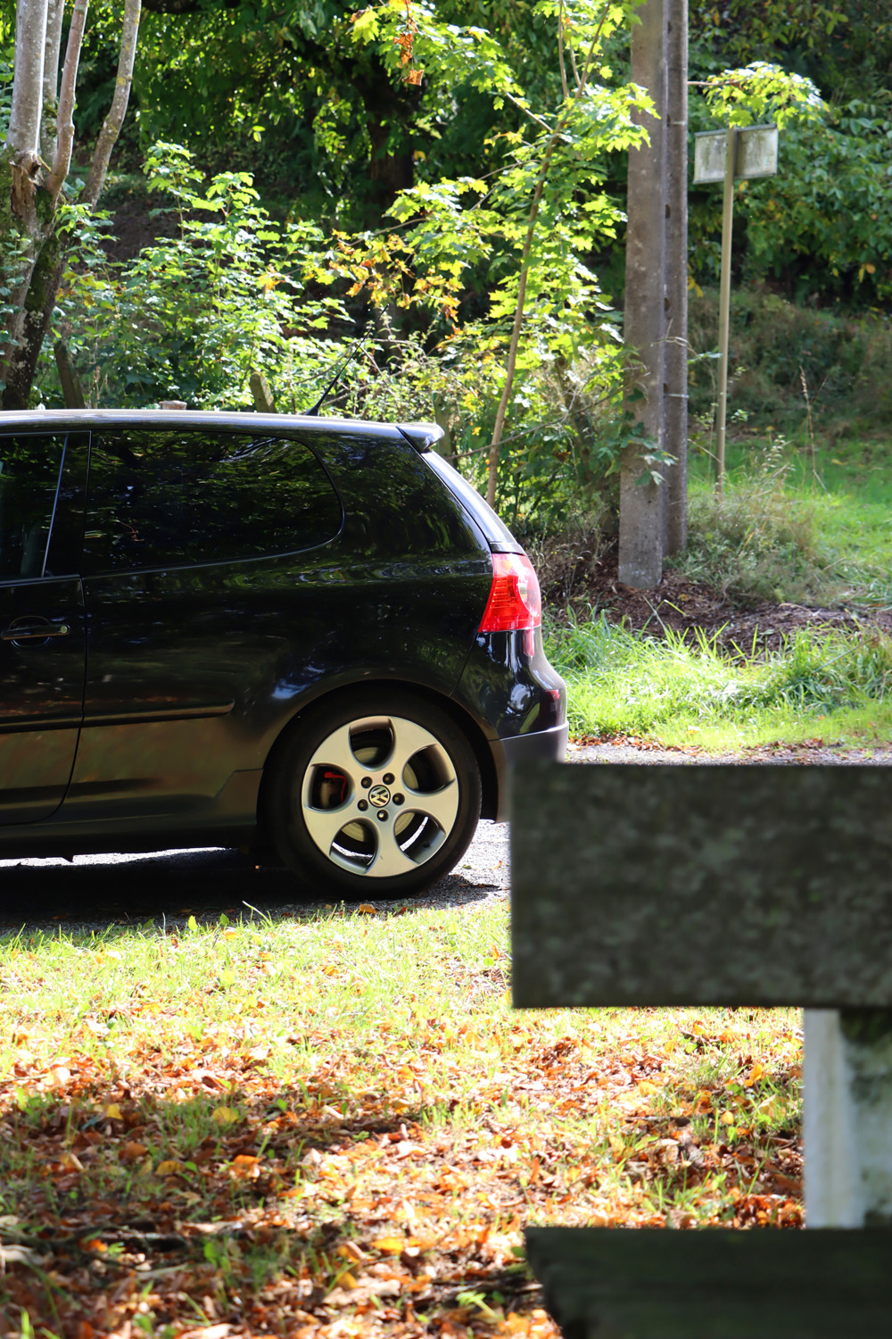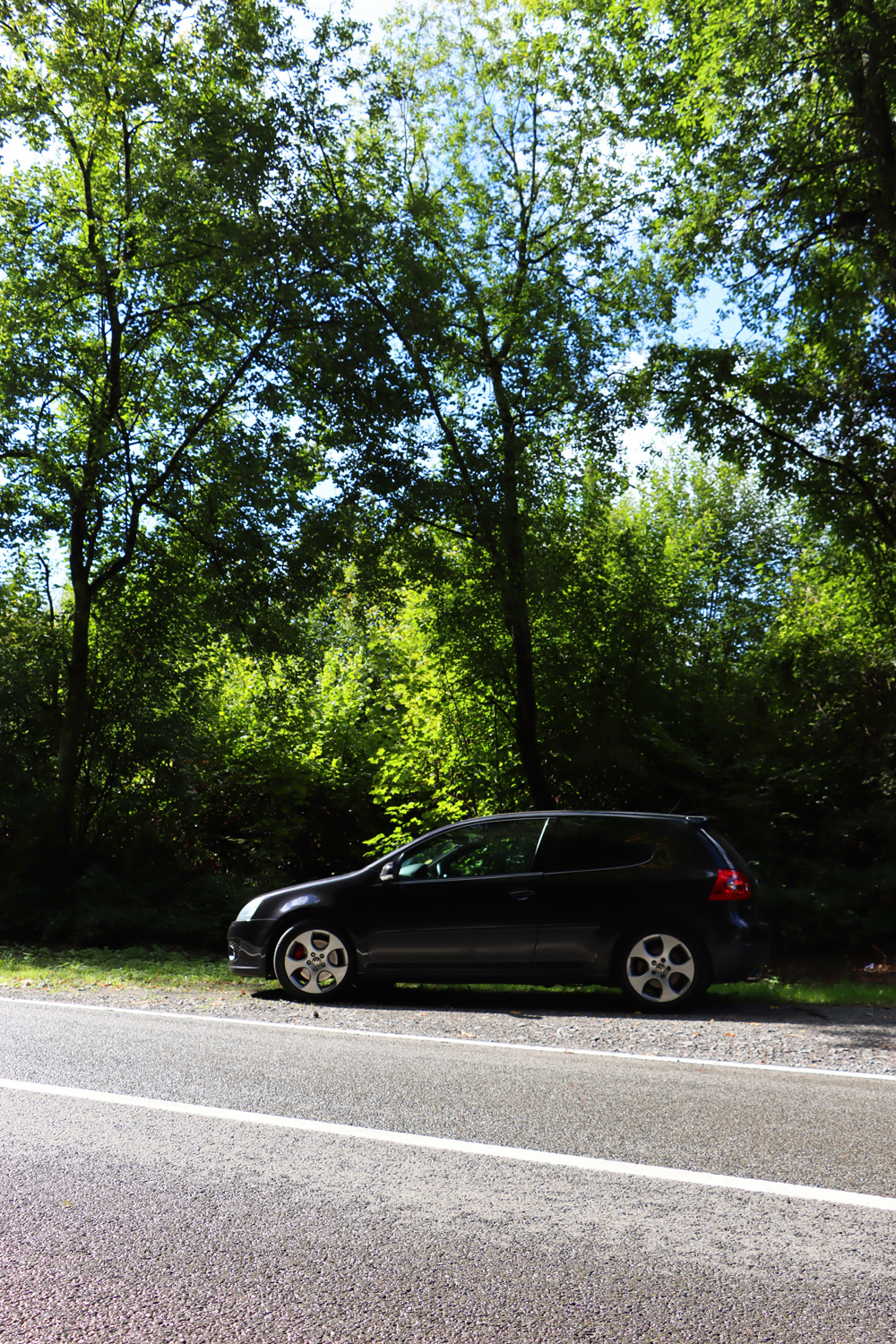 ‘Ons’ exemplaar van de Golf V GTI betreft een zwarte driedeurs met flink wat levenservaring, 245.000 kilometer staan er inmiddels op de teller. Nochtans voelt het geheel nog steeds erg solide aan en kan je enkel slijtagesporen op het stuur en stoelen gewaar worden. Eenmaal in beweging wordt dit robuust gevoel nog versterkt. Niet enkel is de motor nog steeds erg bij de pinken door het eerder vermelde hoge koppel bij lage toeren, ook de ophanging is nog verrassend goed opgewassen voor wat ruig Ardeens asfalt. Oneffenheden worden nog goed weggefilterd terwijl de koets ook in krappere bochten -bij lastwissels- goed onder controle wordt gehouden. Ook 20 jaar na datum geldt dit nog steeds als het perfecte compromis tussen demping en controle.