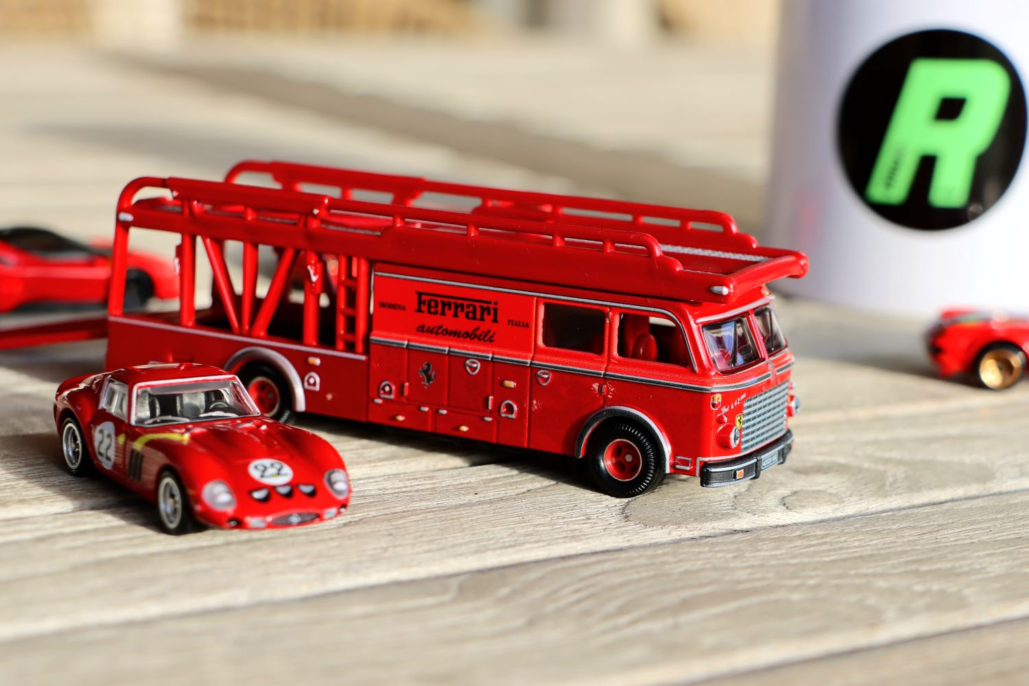 Met de nieuwe licentie van Ferrari op zak besloot Hot Wheels meteen in te zetten op beide fronten. Enerzijds, kon je bij Aldi afgelopen herfst al de 296 GTB, F40 LM en 365 GTB4 Competizione Daytona terugvinden in de rekken. Waarbij dus meteen zowel een moderne sportwagen, een youngtimer als een echte klassieker verscheen. Anderzijds, was er ook een premiumversie om duimen en vingers bij af te likken: de Ferrari 250 GTO met Fiat 642 RN transportwagen. Niet alleen een welgekozen duo maar tevens eentje dat tot in de puntjes is afgewerkt. Niet onlogisch dat de prijzen op Ebay meteen opliepen…