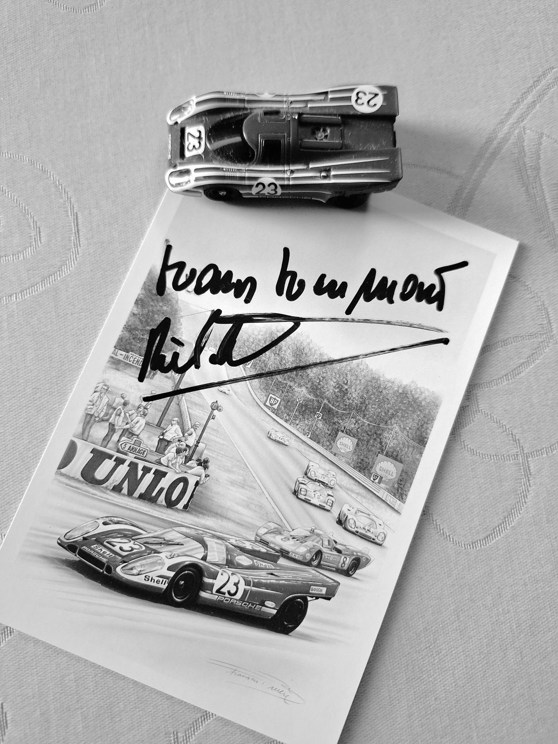 Vanaf ’66 keerde hij terug naar die Heimat, Porsche én Le Mans, wat meteen een 5de plaats algemeen en 2de plaats in zijn categorie opleverde. En daarna zou het alleen nog maar in crescendo gaan, met in seizoen 1968 reeds overwinningen in de 24 uur van Daytona en de 12 uur van Sebring. In ’69 volgde op Le Mans vervolgens het bloedstollend einde -na de wandelende start van Jacky Ickx en de dood van John Woolfe- tussen de #6 Ford GT40 van Ickx/Oliver en de #64 908 van Herrmann/Larrousse. In de laatste ronde wist Ickx zijn tegenstander Herrmann te verschalken en diens Porsche nog net enkele lengtes op afstand te houden…
