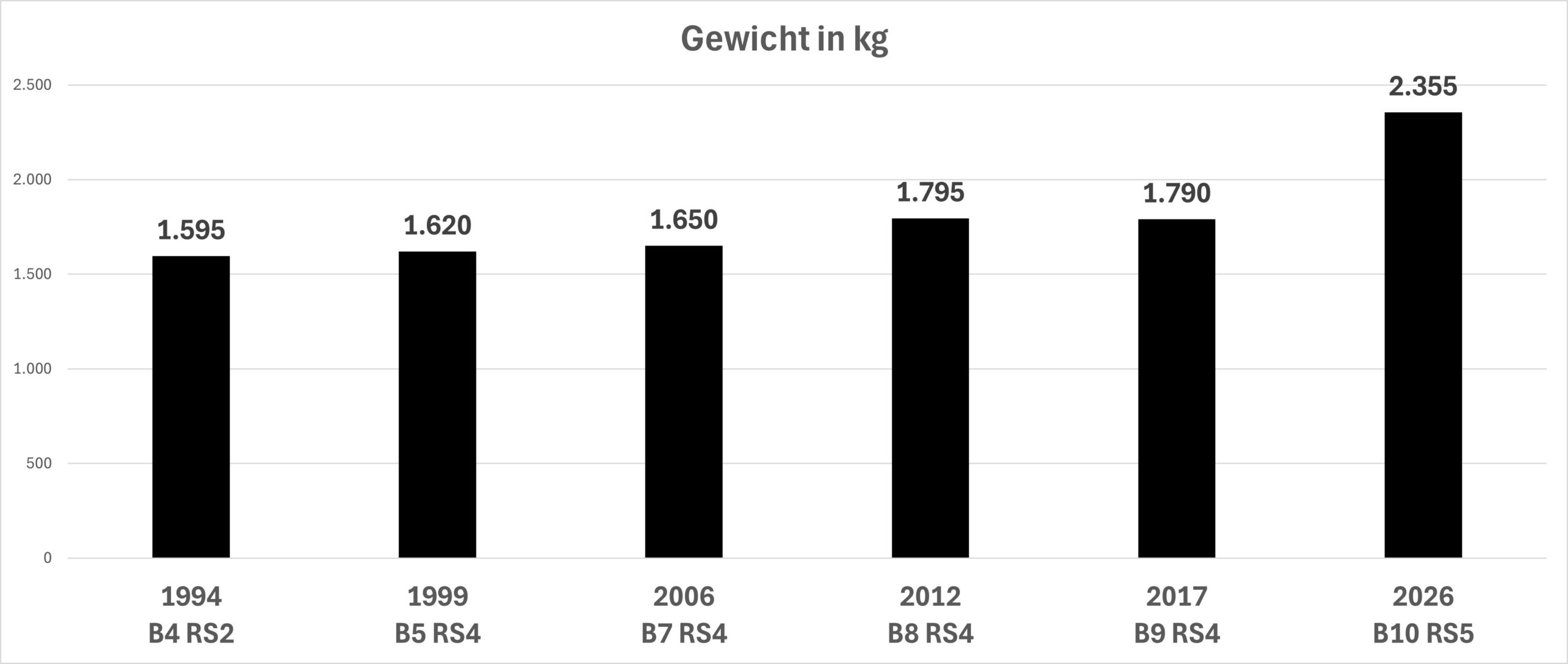 Na de BMW M5, laat ook de nieuwe Audi RS5 de weegschaal fors boven de 2 ton uitkomen. Tijd om dit in een (historisch) perspectief te plaatsen.